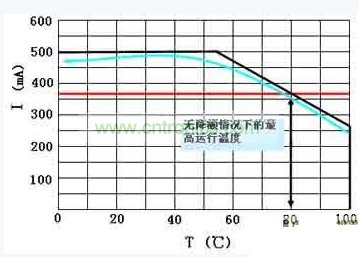 利用無溫度依賴性的電源運行LED存在弊端:在高溫區域內,LED則超出規格范圍運行。此外,當處于低溫區域時,照明源就由明顯低于最大容許電流(參見圖1紅色曲線)的電流供電。如圖1的綠色曲線所示,通過LED驅動電路中的正溫度系數熱敏電阻(簡稱PTC熱敏電阻)來控制LED電流是一個重大改進。這至少可以帶來下列好處: