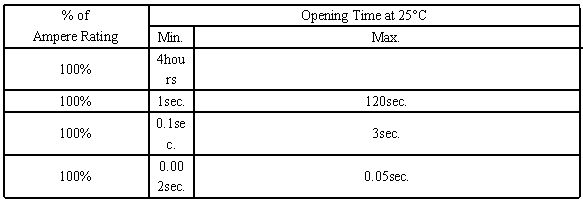 保險絲需要有一定的過載能力:UL規(guī)范保險絲的最大不熔斷電流是110%In; IEC規(guī)范保險絲的最大不熔斷電流是150%In或120%In保險絲也要求在超過限量的過載電流時能及時地?zé)龜啵篣L規(guī)范保險絲的最小熔斷電流在130%In 左右; IEC規(guī)范保險絲的最小熔斷電流在180%In 左右;