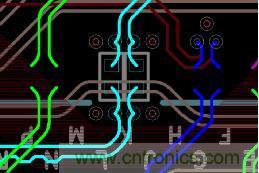 AC耦合電容焊盤相比鏈路的走線會比較寬,這樣對于高速信號傳輸來說就是一處阻抗不連續(xù)點(如圖1),為保證阻抗的一致性,AC耦合電容的下方需要做多層的掏空,但是由于PCB設(shè)計的第3層或者倒數(shù)第3層通常是POWER層,挖空后可能會導(dǎo)致BGA IO口模擬電源的壓降問題;目前很多電源模塊都具有Remote Sense功能,可以補償PCB壓降問題,所以AC耦合電容焊盤下方做多層掏空也是可以的。