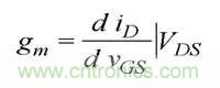 (5) 低頻跨導(dǎo) gm :表示VGS對iD的控制作用。