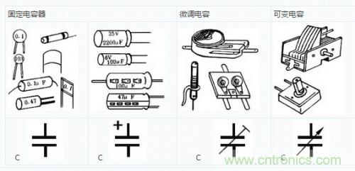 電容器也可以按其電容量是否可以改變分為固定電容器和可變電容器。(包括微調電容器和可變電容器)若按制作材料劃分也可分為瓷介電容器、電解電容器、空氣電容器等等。電容器的外形和出形符號如表3-3。