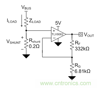 在設計低側電流感應電路時,高性價比的方法之一是使用非反相配置運算放大器(op amp)。圖1是使用運算放大器的典型低側電流感應電路原理圖。