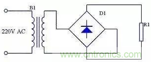 設B1次級電壓為E,理想狀態下負載R1兩端的電壓可用下面的公式求出: