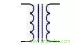 通常直流穩壓電源使用電源變壓器來改變輸入到后級電路的電壓。電源變壓器由初級繞組、次級繞組和鐵芯組成。初級繞組用來輸入電源交流電壓,次級繞組輸出所需要的交流電壓。通俗的說,電源變壓器是一種電→磁→電轉換器件。即初級的交流電轉化成鐵芯的閉合交變磁場,磁場的磁力線切割次級線圈產生交變電動勢。次級接上負載時,電路閉合,次級電路有交變電流通過。變壓器的電路圖符號見圖1。