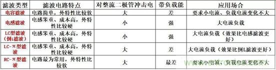在輸出端并聯(lián)一個電容,這種電路較為簡單,只有一個一般比較大的電解電容,輸出電壓隨著輸出電流變化而變化,外特性比較軟,輸出特性很差,因此適用于負(fù)載電流變化不大的電路,同時負(fù)載電流不是很大的場合;為了減少脈動成分,有時候會并聯(lián)一大一小的電容。