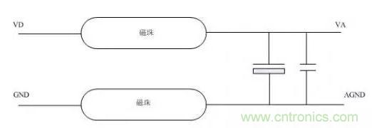 記得在剛學習DSP設計時,師傅在DSP模擬部分應用是推薦一個電路,就是在數字電源和模擬電源上串兩個磁珠,然后加上濾波電容就OK了,很長一段時間,都奉為經典,直到接觸EMC設計時,才發現錯的有多厲害,也明白了當時的一些問題的癥結所在。