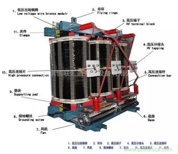 2、環(huán)氧樹脂澆注絕緣的三相干式電力變壓器: