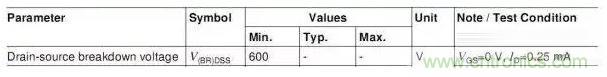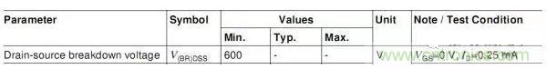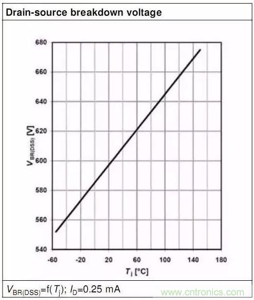 這個參數是有條件的,這個最小值600V是在Tj=25℃的值,也就是只有在Tj=25℃時,MOSFET上電壓不超過600V才算是工作在安全狀態。