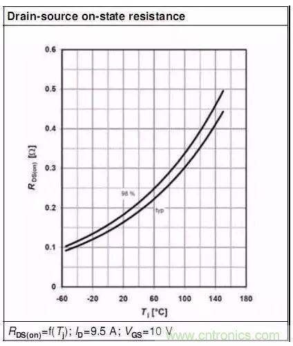從MOSFET Rds(on)與Tj的圖表中可以看到:Tj增加Rds(on)增大,即Rds(on)是正溫度系數,MOSFET的這一特性使得MOSFET易于并聯使用。