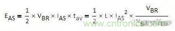 上圖是典型的單次雪崩VDS,ID波形,對應的單次雪崩能量為: