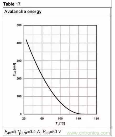 計算出來EAR后,對比datasheet上的EAR值,若在datasheet的范圍內,則可認為是安全的(此處默認重復雪崩電流<IAR),同時也得考慮結溫的影響
