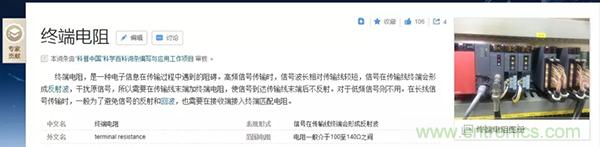 如果我們查詢百度百科,終端電阻的檔案似乎十分清白:
