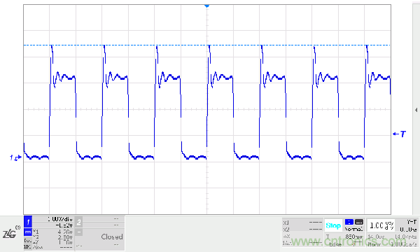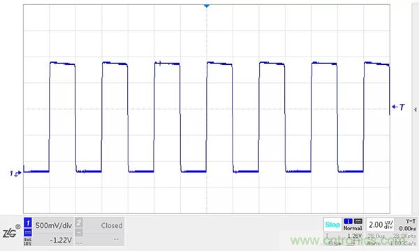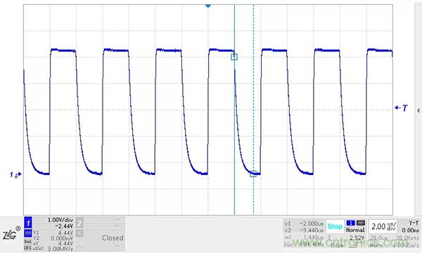 在顯性狀態(tài)期間,總線的寄生電容會被充電,而在恢復(fù)到隱性狀態(tài)時(shí),這些電容需要放電。如果CANH、CANL之間沒有放置任何阻性負(fù)載,電容只能通過收發(fā)器內(nèi)部的差分電阻放電。我們在收發(fā)器的CANH、CANL之間加入一個(gè)220PF的電容進(jìn)行模擬試驗(yàn),位速率為500kbit/s,波形如下圖所示。