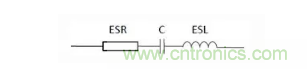 電容的管腳是存在電感的。在低頻應用時感抗較小,所以可以不考慮。當頻率較高時,就要考慮這個電感了。舉個例子,一個0805封裝的0.1uF貼片電容,每管腳電感1.2nH,那么ESL是2.4nH,可以算一下C和ESL的諧振頻率為10MHz左右,當頻率高于10MHz,則電容體現為電感特性。