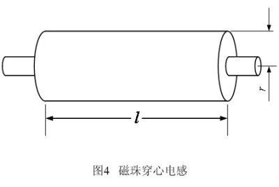 穿心電感的電感量一般都比較小,大約在幾微亨到幾十微亨之間,電感量大小與穿心電感中導(dǎo)線的大小以及長(zhǎng)度,還有磁珠的截面積都有關(guān)系,但與磁珠電感量關(guān)系最大的還要算磁珠的相對(duì)導(dǎo)磁率 。圖3、圖4是分別是指導(dǎo)線和穿心電感的原理圖,計(jì)算穿心電感時(shí),首先要計(jì)算一根圓截面直導(dǎo)線的電感,然后計(jì)算結(jié)果乘上磁珠相對(duì)導(dǎo)磁率