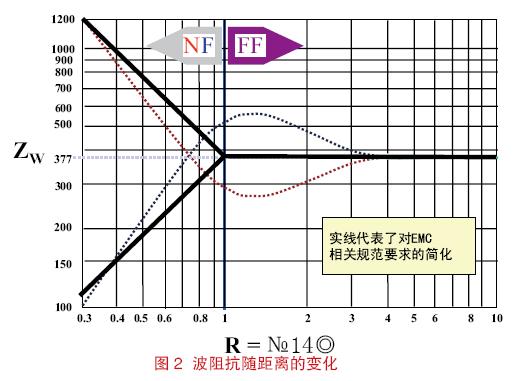 在靠近源的區域,電場和磁場的關系非常復雜;盡管既有電場又有磁場,但該區域要么基本體現為電場要么基本體現為磁場。在遠離源的區域,電場和磁場的關系變得穩定了,即E/H=120π。電場和磁場的這種關系如圖2 所示。EMC從業者通常采用簡化和近似的距離,即R=λ/2π,并認為場在該處出現從近場到遠場轉變。這個公式的前提假設是源結構的尺寸小于半個波長。天線的設計者們所尋求的更加精確的表達式可能會成為上述觀點的一個例外情況。[page]