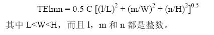 對于一個簡單的矩形殼體(尺寸為L,W,H,單位是米),各諧振頻率可以通過下面的表達式計算得到