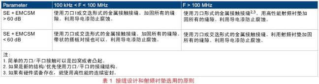 雖然屏蔽面板或外殼可以采用各種材料,但殼體的屏蔽效能主要取決于面板和外殼與殼體之間連接的密封情況,即接縫密封處的射頻搭接的質量。任何獨立的面板或外殼,如果沒有充分接地或者和殼體充分搭接,就會成為一個發射天線。如果將面板單點接地會降低天線的效率并防止其成為天線,但這不會消除通過其它縫隙的泄漏。