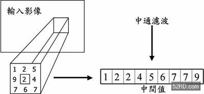 最原始的標準中值濾波器是由J.W.Jukey在1971年所提出,其目的主要是用來處理非線性信號,此技術可以克服線性濾波所引起的細節模煳,中值濾波的處理方式是取一個長寬皆為特定大小的視窗,對視窗中資料大小做排序,然后取中間值做為濾波后結果。
