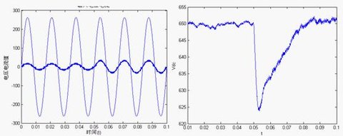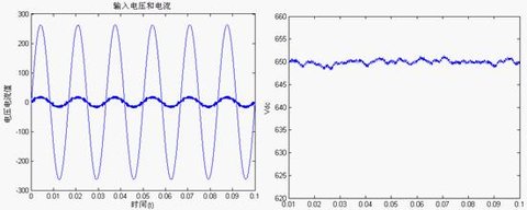 圖6輸入a相電壓和電流穩態波形圖7輸出直流電壓穩態波形