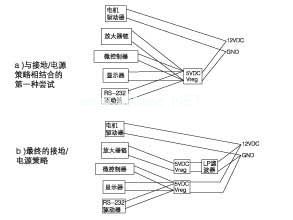 圖6電源和接地的第一種和第二種策略。注意,第二種要盡可能地將噪聲與敏感電路分開。