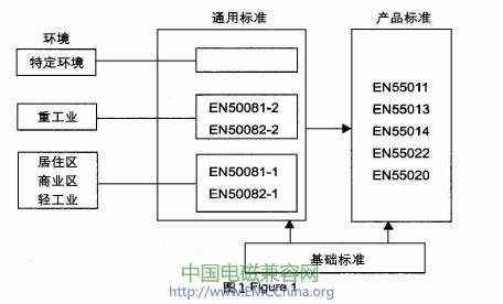 歐共體關(guān)于EMC的基本保護(hù)要求體現(xiàn)在其89/336/EEC指令中,所有進(jìn)人歐洲市場的電子電氣產(chǎn)品都必需符合該指令要求。該要求最終是通過貫徹歐洲標(biāo)準(zhǔn)(EN)來實現(xiàn)的,其標(biāo)準(zhǔn)體系如圖1所示,由歐洲標(biāo)準(zhǔn)化委員會(CENELEC)制定實施。