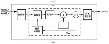 W181采用了頻率鎖相環(PLL)技術來調制輸入時鐘,其結果是得到一個輸出時鐘,它的頻率可緩慢地掃過一個接近于輸入信號的窄帶。基本電路結構如圖2所示。