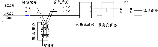 電源防雷主要是針對系統(tǒng)級而言的,系統(tǒng)級設(shè)計要按照三級防雷設(shè)計,總電源進入端設(shè)置電源防雷(如OBO公司的V20-C/3-PH 385),可以對系統(tǒng)的電源進行一級防護,電源經(jīng)過電源防雷后,進入隔離變壓器,隔離變壓器可以對電磁干擾信號進行較好的防護,抑制其對系統(tǒng)的影響。后進入UPS,UPS可以濾除一部分干擾信號,這樣電源再進入系統(tǒng)設(shè)備,電源是一種純凈的電源,可以使系統(tǒng)更好、更可靠的工作。