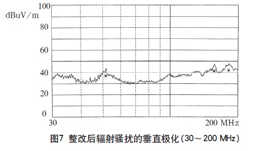 由測試結(jié)果可以看出,通過電磁兼容設(shè)計在傳導(dǎo)騷擾抑制方面取得了良好效果,在高頻段輻射騷擾的設(shè)計也達(dá)到了預(yù)期效果,下面還需對在30~200MHz頻段范圍內(nèi)的輻射騷擾進(jìn)行改進(jìn)設(shè)計。