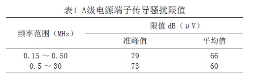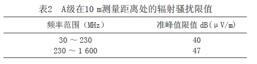 根據(jù)鐵路客運專線標(biāo)準(zhǔn)規(guī)定,傳導(dǎo)騷擾限值和輻射騷擾限值如表1、2所示。