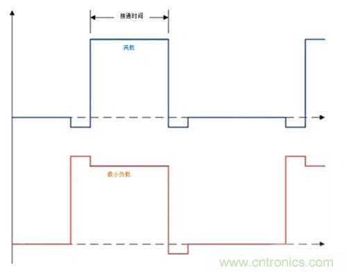 圖1:滿載和無(wú)負(fù)載時(shí)的脈沖寬度