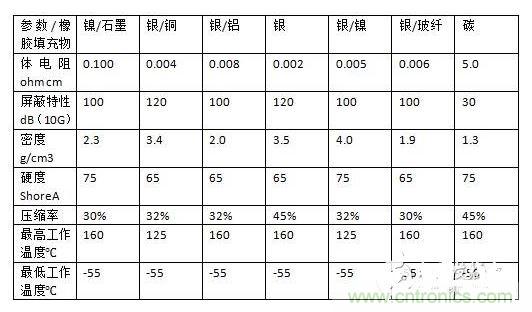 選擇合適的導電橡膠,需要注重以下指標:橡膠填充物、體電阻、屏蔽性能、密度、硬度、壓縮率、工作溫度,其中橡膠填充物是材料特性,體電阻和屏蔽性能是電氣特性,密度、硬度、壓縮率和工作溫度是物理特性。