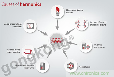 變頻器中使用的經(jīng)典整流器會產(chǎn)生高達50次(2.5 kHz)的諧波。諧波會在電網(wǎng)中產(chǎn)生相關的問題,但變頻器的普及,這個頻段已經(jīng)被EN 61000-3-4和3-2等標準所覆蓋。