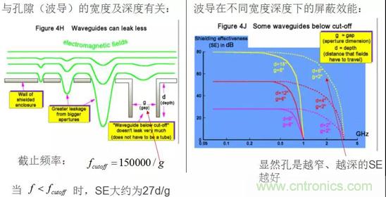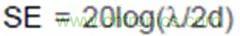 在一個完美的屏蔽殼體上開一個洞,相當于構(gòu)成一個半波共振縫隙天線,屏蔽效能SE與孔的最大尺寸d、電磁波波長λ關系如下: