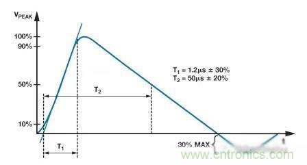 典型干擾波形:浪涌脈沖能量可以達(dá)到90J,浪涌1.2/50µs波形