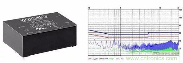 上圖為MORNSUN電源LH15-10B05的電源應用到某品牌產品上面后,整機測試傳導騷擾結果,此結果無法符合EN55022/CISPR22的CLASS B要求,甚至連CLASS A都無法滿足要求,更不用說設計余量。所以電源即使內部電磁干擾設計等級再高,在應用過程中一定要留應用部分,具體參數可參考具體產品對應的規格書。MORNSUN的電源產品在規格書中都會有應用電路這一欄,會將在應用電路的基礎上實現的指標,描述的非常詳細。