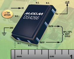 DS4266支持LVPECL和LVDS輸出。器件工作在-40°C至+85°C擴展級溫度范圍,提供節(jié)省空間的5.0mm x 3.2mm x 1.49mm、10引腳LCCC表貼陶瓷封裝。芯片起價為$4.50 (10,000片起,美國離岸價)。可提供樣品以加速設(shè)計進程。