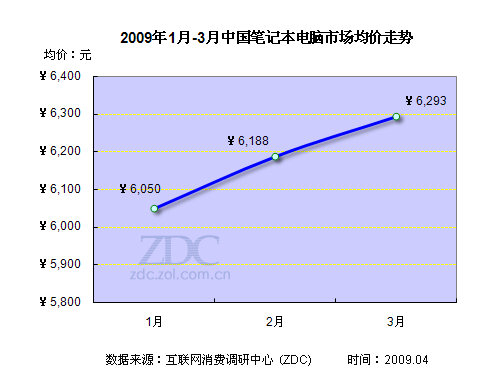 經(jīng)過(guò)了幾年的價(jià)格洗禮,如今筆記本已經(jīng)走近了尋常百姓家,再不是高不可攀的奢侈品。根據(jù)ZDC最新的均價(jià)調(diào)查顯示,2009年第一季度,筆記本市場(chǎng)均價(jià)為6000多元。1月份市場(chǎng)均價(jià)為6050元,2月與3月,筆記本市場(chǎng)嚴(yán)重缺貨導(dǎo)致價(jià)格出現(xiàn)上漲,市場(chǎng)均價(jià)在3月份達(dá)到了6293元。