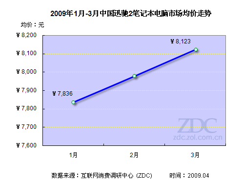 與整體市場(chǎng)的均價(jià)走勢(shì)一樣,第一季度迅馳2筆記本的市場(chǎng)均價(jià)呈現(xiàn)走高的態(tài)勢(shì),1月份市場(chǎng)均價(jià)為7836元,2月份上漲至7978元,3月份達(dá)到了8123元。