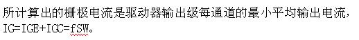 選取合適的IGBT驅(qū)動器需要考慮幾點。驅(qū)動器的最大平均輸出電流必須大于計算值,且驅(qū)動器的最大柵極峰值電流必須等于或大于最大計算柵極峰值電流。驅(qū)動器的輸出電容必須能夠提供IGBT柵極充放電所需的柵極電荷。
