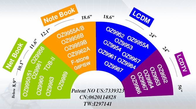 基于這樣的技術(shù)積累,目前凹凸科技已成為擁有最廣泛LCD背光驅(qū)動(dòng)IC產(chǎn)品線的廠商,如圖1所示,從上網(wǎng)本到筆記本電腦再到LCD顯示器模塊、LCD TV,尺寸從8.9寸橫跨到56寸,凹凸科技能提供滿足各類應(yīng)用需的相應(yīng)LED驅(qū)動(dòng)器解決方案(具備不同的效率等級、PWM接口、不同通道數(shù)),包括3x9、4x7、4x8、6x10、8x8、8x9等不同配置。多種技術(shù)特性如集成高速PWM功能、采用快速切換的開關(guān)模式、突波模式與相移技術(shù),及其專有的區(qū)域照明等技術(shù),則可幫助開發(fā)人員解決多串?dāng)?shù)LED均流、LED線性調(diào)光所產(chǎn)生的噪聲、功率耗散,以及廠商對于保護(hù)規(guī)格要求不一等挑戰(zhàn)。
