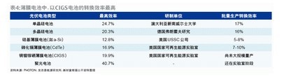 從成本來看,中投證券認為,盡管晶體硅價格暴跌,CIGS仍具成本優勢。首先,由于CIGS電池尚未達到量產,通過成本細拆,參照工藝類似的第一太陽能的成本構成(主要是設備折舊、玻璃、材料和人工等四項),在規模化效應下,CIGS薄膜電池的成本約為1.07美元/瓦,已遠低于目前的晶體硅電池成本。其次,CIGS電池采用相對廉價的玻璃為襯底,這樣所需的稀有元素耗損量大為減少;另外,CIGS電池的弱光效應較好,對光照的要求降低,運行時間遠高于晶體硅電池。