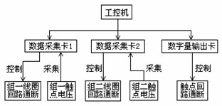 為了滿足試驗環境的需要,采用工業控制計算機作為檢測裝置的核心。對觸點電壓的采集則選用兩塊高性能數據采集卡來實現,可同時對兩組共32對觸點進行檢測,兩組試品可以是不同型號不同廠商的繼電器,而且對檢測觸點的常開常閉不做限制。