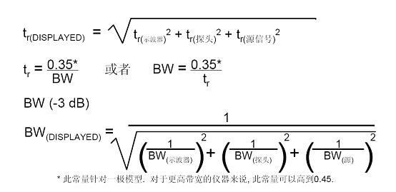 如果示波器和探頭各自均為100MHz帶寬,其上升時間均為tr=3.5ns 。則有效系統上升時間就由下式給出: