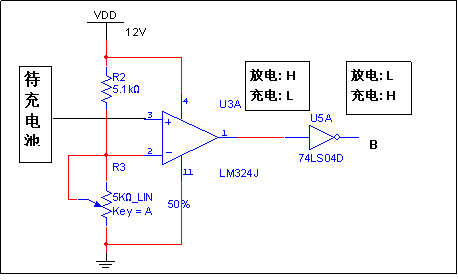 A點電位在放電狀態時為低電位,充電狀態時為高電位。此點電位我們暫且記錄下。