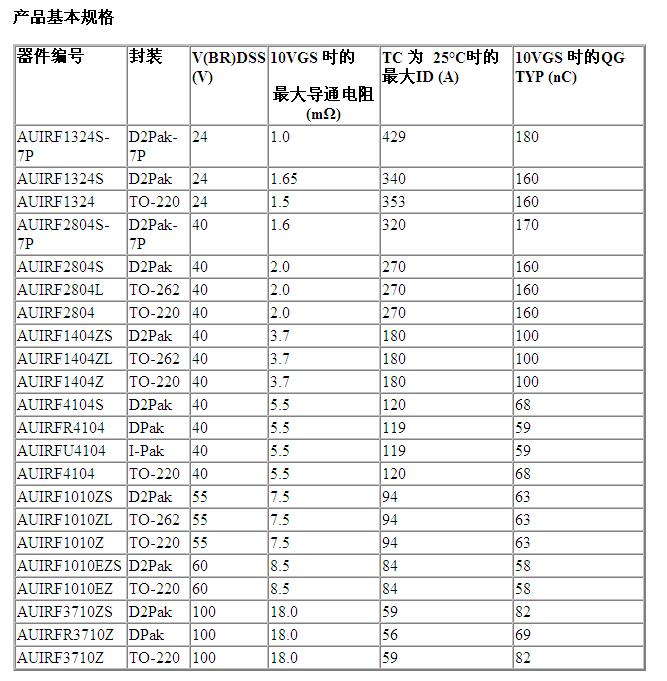 IR 亞洲區(qū)銷售副總裁潘大偉表示:“IR 這些經(jīng)過優(yōu)化的汽車專用MOSFET具有低導(dǎo)通電阻,具有寬泛的電壓和封裝。由于其表面形成了鈍化層,因而可以提高可靠性。此外,該器件的材料經(jīng)過調(diào)整、優(yōu)化后可達(dá)到堅(jiān)固、耐用的效果。”