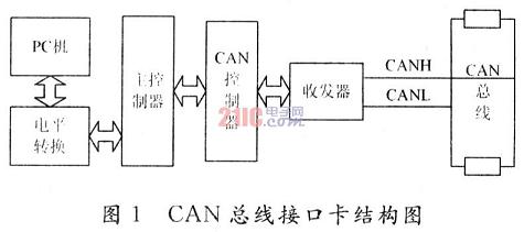 前者具有傳輸速度快的特點,但卻要占用一個計算機的插槽,并且設計上十分困難;后者的傳輸速度也很快,且價格較便宜,但要花費很大的精力進行USB的固件開發和維護,并要編寫復雜的驅動程序。根據此,需要設計一種能夠方便讀取CAN總線數據,并通過RS232串行口將數據送給PC機處理和顯示的接口卡;此外還需對其串行傳輸的協議進行加強,以使能有效地降低傳輸過程中出現的錯誤。