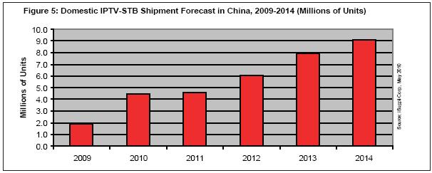 據(jù)iSuppli公司,由于國內(nèi)市場需求旺盛,未來幾年中國網(wǎng)絡(luò)電視機(jī)頂盒(IPTV-STB)有望取得驚人的增長。