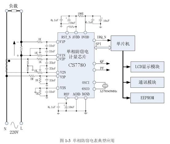 圖1:基于芯海CS7780芯片的單相防竊電電表典型應(yīng)用。