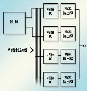一種更有吸引力的方案是將以前分別由控制器和驅動器IC完成的功能在芯片內重新劃分。對控制器來說,諸如可編程電壓鑒別電路、一個PWM斜坡振蕩器、一個誤差信號放大器、偏置電壓和檢錯等功能在一個多相設計中僅出現一次。驅動IC現在變成一個相位IC,管理該設計每一相位中所有要重復的功能。這些功能包括電流分配、PWM、相位時序、電流感應和雙門驅動器。控制與相位IC之間的通訊由一種5線制模擬總線來完成,分別傳遞以下一些信息:偏置電壓、相位時序、電流感應/分配、PWM控制和參考調節電壓。